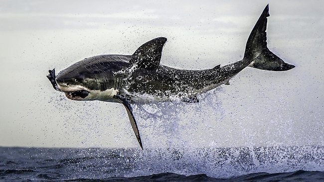 (Image:http://www.news.com.au/travel/news/great-white-shark-snapped-mid-air-with-fake-seal-between-teeth/story-e6frfq80-12265275716390)